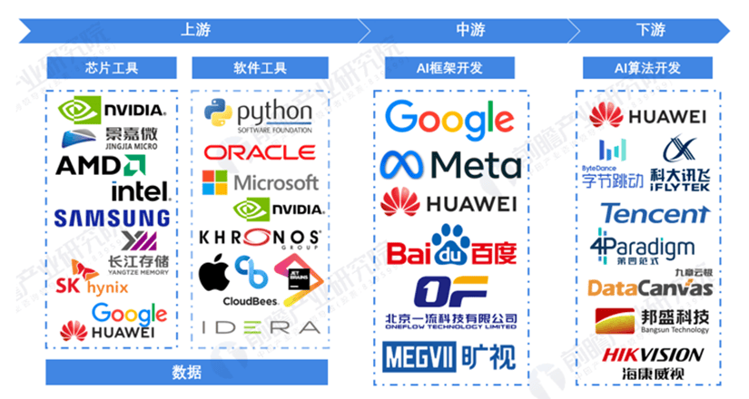 AI财产链分为上、中、下逛三个环节:上逛(根本层)供给算力取数据支持;构成行业垄断款式。